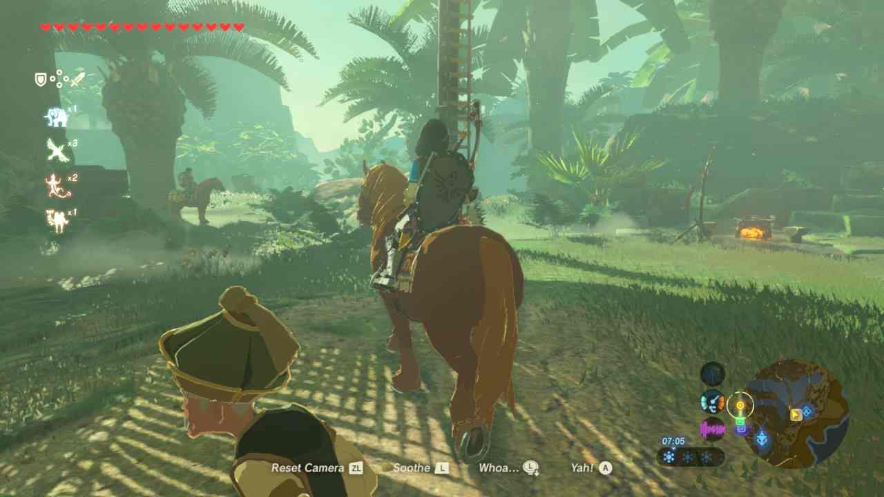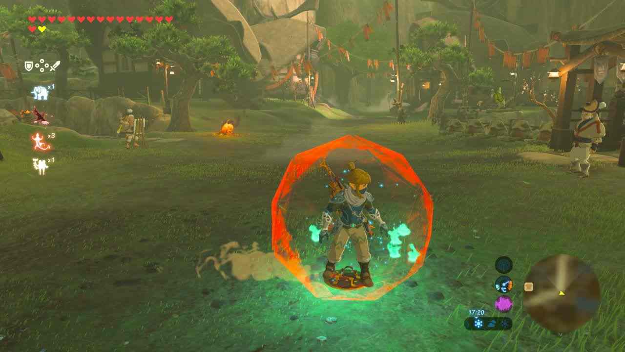 El personaje principal en Breath of the Wild es el mismo mundo de Hyrule. Desde cañones cerca del desierto hasta junglas amazónicas pasando por montañas nevadas y volcanes en erupción, este mundo tiene una variedad y un sentido geológico nunca visto en la saga. Todavía mejor, vale la pena recorrer cada milímetro de este mundo: esparcidos por todo el mundo hay objetos, comida y animales que podemos cazar y recolectar. Se acabaron los días de obtener corazones cortando el césped, aquí te tienes que buscar la vida comiendo, lo cual se conecta a una de las mecánicas más innovadoras y adictivas del título: la cocina. Mezclando distintos ingredientes, objetos y partes de monstruo podemos cocinar una variedad de platos y elixires con múltiples efectos de regeneración de vida y mejoras temporales de estadísticas. La economía en Breath of the Wild es dura: nuestro principal método para conseguir rupias, más allá de encargos y misiones secundarias, es vender todos estos materiales que vamos recolectando, lo cual incentiva aún más la exploración y la búsqueda de minerales y materiales bien valorados.