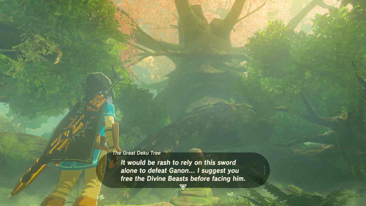 La premisa, como de costumbre, es bastante sencilla. Cien años después de una gran batalla que asoló Hyrule, Link, el héroe Hyliano elegido por la Espada Maestra, despierta recuperado de sus heridas mortales en el santuario de la resurrección. Su tarea: descubrir más sobre los Guardianes y las Bestias Divinas, monstruos mecánicos construidos tiempo atrás por la tribu Sheikah y controlados por Ganon, al mismo tiempo que recupera su memoria sobre lo que sucedió hace cien años. El interés proviene de que esta vez Hyrule es un paraje postapocalíptico, en el cual de todas formas las distintas culturas y especies han podido adaptarse a la calamidad viviendo en las ruinas y reconstruyendo sus vidas. Además de las misiones principales arraigadas a cuatro puntos principales, la historia también nos pide que busquemos los lugares retratados en una serie de fotografías, lo cual nos trae recuerdos del pasado, construyendo la historia como un puzzle con las piezas esparcidas por todo el mundo. ¿Lo mejor? Todo es opcional, construímos la historia en el orden y ritmo que nosotros escogemos de una forma en que pocos lo han hecho.